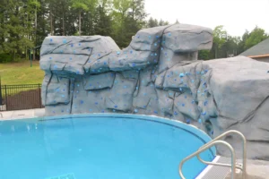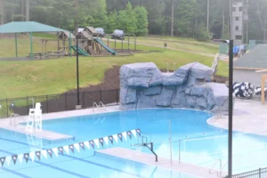 Camp IHC (formerly Indian Head Camp) in Equinunk, Pennsylvania transformed its waterfront with a 7,033 square foot aquatic complex that has become the heart of the summer camp experience. Completed in 2018 and designed by Main Line Commercial Pools, this multi-zone facility seamlessly integrates a competition pool for swim instruction and team activities with a leisure pool and climbing rock wall—creating an environment where campers of all skill levels can challenge themselves, build confidence, and create lasting memories.