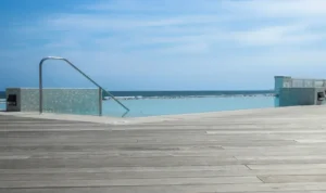 The Grand at Diamond Beach in Wildwood, New Jersey redefined luxury coastal living in 2009 with a stunning infinity edge leisure pool that captures the essence of beachfront sophistication. Designed by Wallover Architects and constructed using Myrtha Pools® technology, this elevated amenity creates the illusion of water flowing seamlessly into the horizon—delivering the visual drama and resort-style experience that distinguishes premier oceanfront properties.